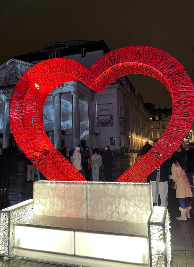 「チョコレート王国」とも呼ばれるベルギー。バレンタインには、バラと一緒にチョコレートを贈る人も多く、ショコラトリーのショーウィンドウもこの時期だけの特別なディスプレイに変わります。店頭には、ハート型のチョコレートやバレンタイン限定ボックス、特別セットなどが並び、バレンタインを盛り上げます。パン屋さんでも、赤色のヴィエノワズリーやハート型のパンを販売するお店があり、街全体が甘く華やかな雰囲気に包まれます。