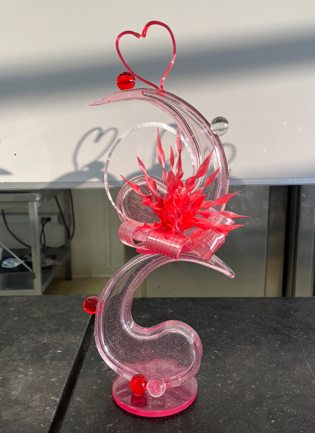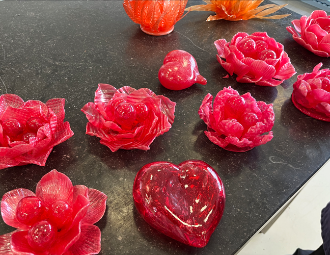 私が通っていた製菓学校では、通常の6年生修了後に7年生として追加で1年、飴細工やチョコレートの授業を受けることができました。私は7年生に進級したのですが、飴細工のクラスではバレンタインをテーマにしたピエスやお花を制作する授業がありました。細かい作業が多く大変でしたが、バレンタインらしいピンク色を基調とした飴を使って表現する時間はとても楽しく、充実していました。