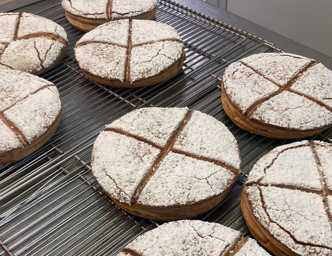 「レイエ」と呼ばれる、生地の表面に切りつける模様も色々とバリエーションがあり、太陽や麦の穂などを表現したトラディショナルな物や、最近SNS で見るようなパティシエの方々のオリジナルなレイエなどがあります。今日ご紹介したいのは、そういった模様のバリエーションとは違うんです。以前私が働いていた職場にも、現在私が住んでいる地方でも、おそらく日本ではあまり知っている方はいないんじゃないかなと思うガレット・デ・ロワがあるんです。